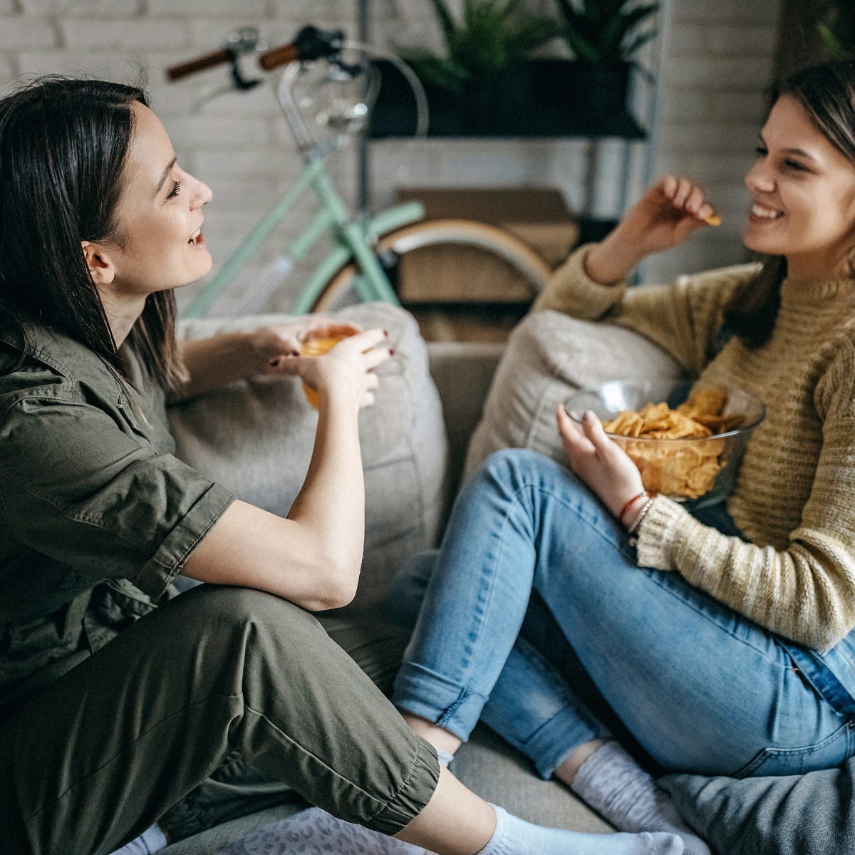 Nella foto 1 ci sono due amiche, a sinistra Sofia, a destra Francesca. Hanno 24 anni. Adesso loro vivono insieme a Milano perché loro studiano medicina. Sofia bsta bevendo la spremuta, Francesca sta mangiando patatine fritte (?) e stanno parlando dell'ultima festa.