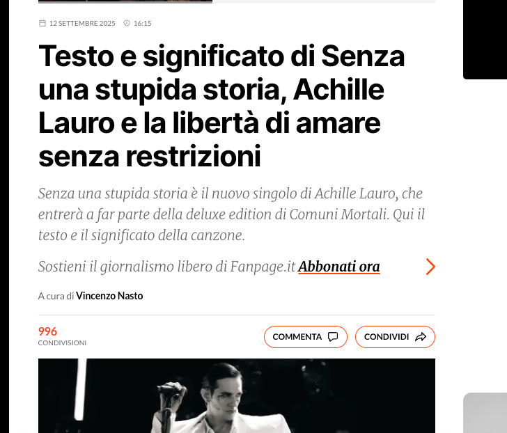 Ascoltiamo insieme “Senza una stupida storia”. È la nuova canzone di Achille Lauro. Questa canzone è al secondo posto della classifica di Radio Italia: